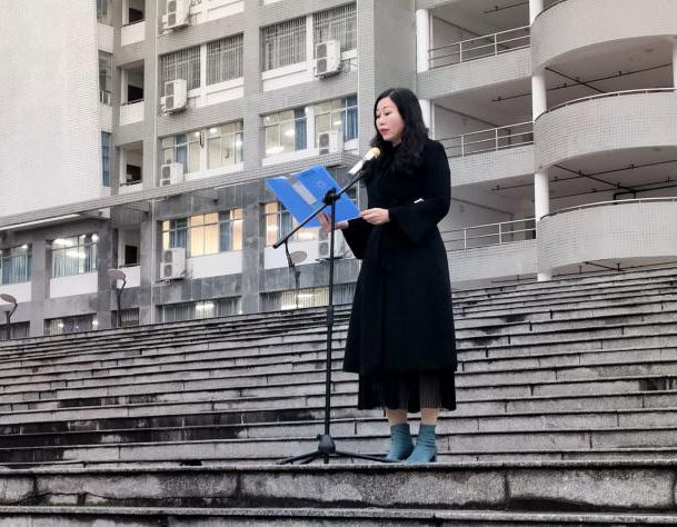 7时整,在陈楠老师宣布升旗仪式正式开始后,校国旗护卫队队员护着鲜艳的五星红旗、迈着铿锵有力的步伐走向国旗台。伴随着庄严的国歌声,同学们一边唱着国歌,一边注目着国旗缓缓升起。升旗仪式结束后,高分子材料191班董铭同学做国旗下的演讲。在演讲中,董铭表示作为新时代大学生,我们要肩负起时代责任和历史使命,与祖国同呼吸共命运,面对前方未知的挑战,应迎难而上,越战越勇,不负党的期望、人民的期待、民族的重托。学院党委副书记余晓秋老师在讲话中表示:让我们牢记习近平总书记对新时代中国青年提出的6点要求;“树立远大理想,热爱伟大祖国,担当时代责任,勇于砥砺奋斗,练就过硬本领,锤炼品德修为。”把责任担在肩上,义无反顾。以饱满的热情和昂扬的斗志谱写属于你们的崭新篇章!