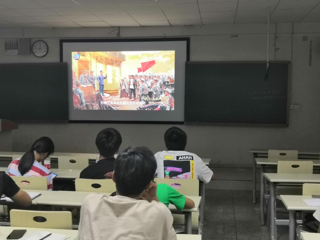 为开展“不忘初心,牢记使命”主题教育,同时为庆祝新中国成立70周年,向在校学生宣传爱国主义精神,2138CC太阳集团团委书记颜晔于9月23日在2138cc太阳集团红湘校区第九教学楼403带领第十九届团委学生会干部观看了影片《我们走在大路上--新中国的诞生》。