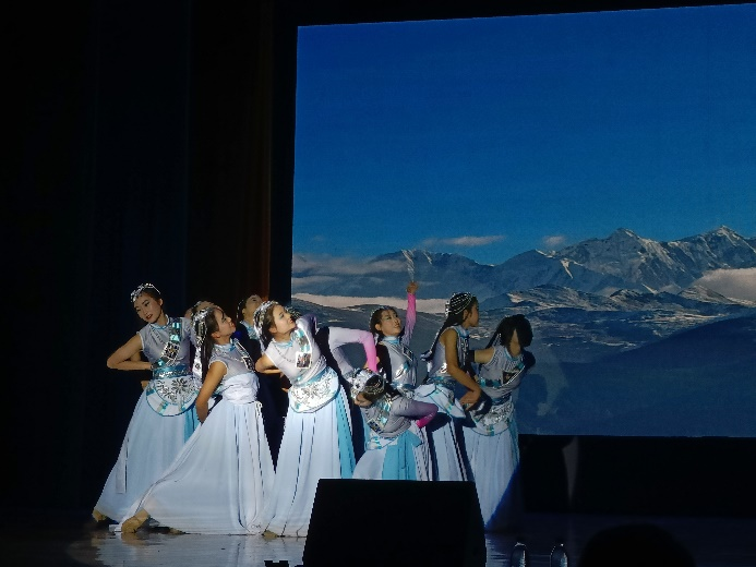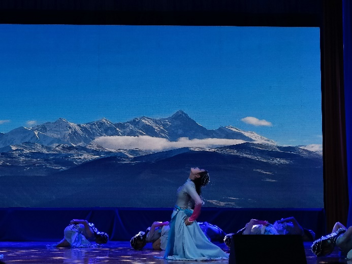“灵舞风华,创天地之妙;祈禳民福,沐雪域圣泉”。是的,这支群舞以“沐浴节”为创作背景而生,而“沐浴节”正是藏族传统民俗传统节日,有“祛除晦气”“祈禳纳福”的寓意。而这里,她们,以舞蹈,描绘了一群藏族少女沐浴在高原湖畔的情景。