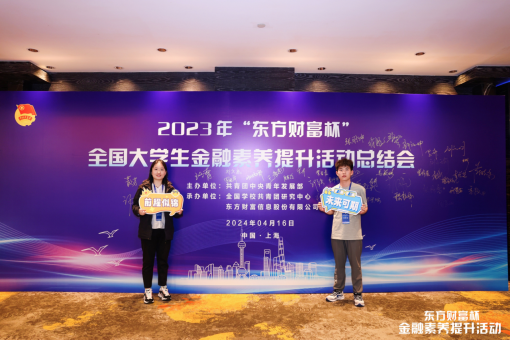 2024年4月16日,2023年“东方财富杯”全国大学生金融素养提升活动总结会在上海举办。共青团中央青年发展部、共青团上海市委、全国学校共青团研究中心、东方财富信息股份有限公司等相关单位负责同志出席总结会,200余位获奖学生、指导教师和高校团干部参加总结会。