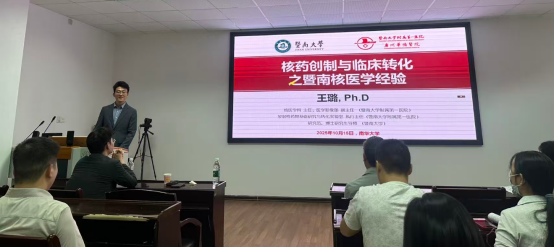 当日,王钦阳教授作了题为焦亡与肿瘤免疫调控学术报告,解析细胞溶解死亡(如细胞焦亡)介导抗肿瘤免疫的机制与挑战,并结合团队在溶瘤纳米系统、仿生基因编辑辅助系统等方面的研究,为肿瘤防治研究带来新思路。王璐教授了题为“核药创制与临床转化之暨南核医学经验”学术报告王教授从平台基础、核医学核心技术、产业布局及临床转化等维度,介绍了暨南大学附属第一医院在钇-90治疗、新型核药研发等领域的突破,为该校核医学相关学科研究提供借鉴。